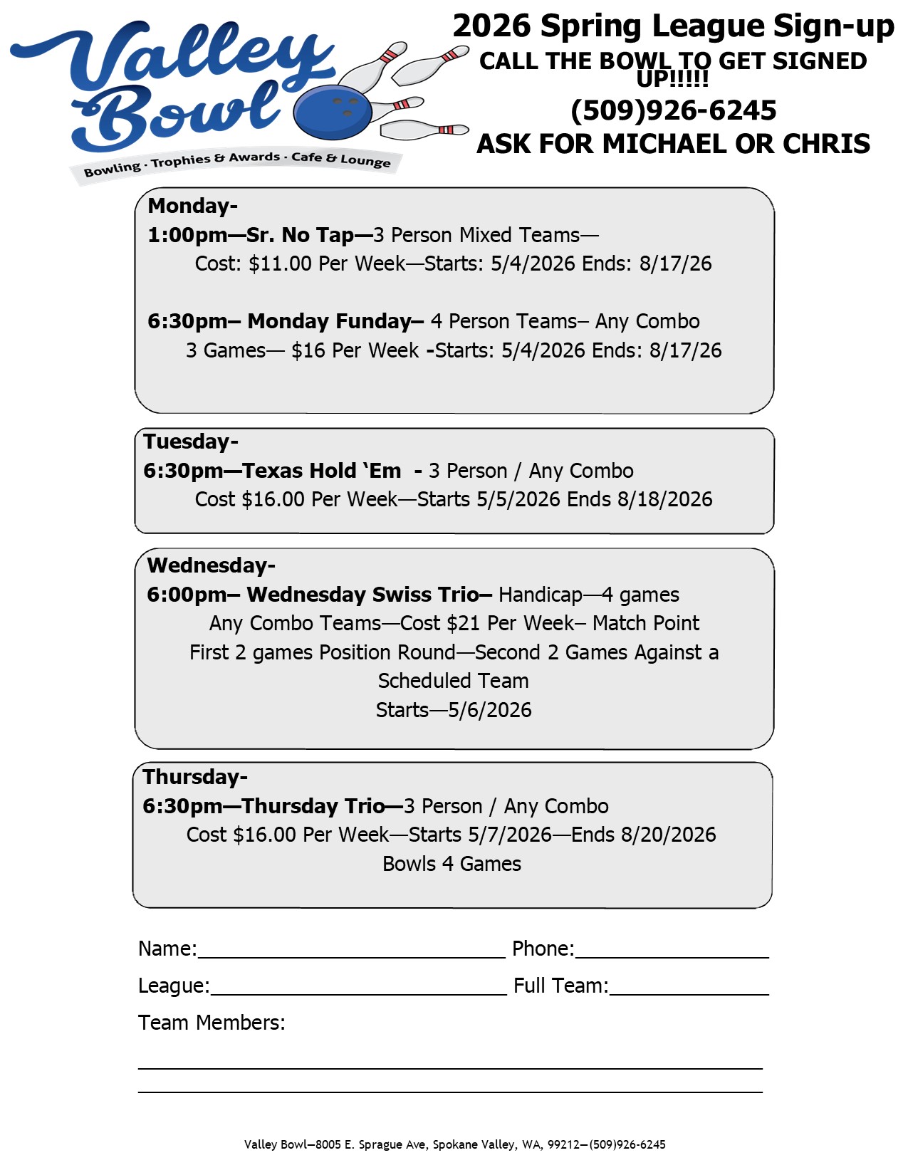 2026 SPRING Leagues are forming